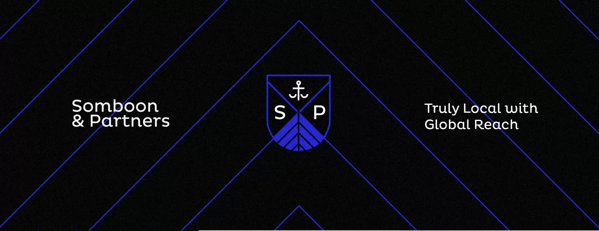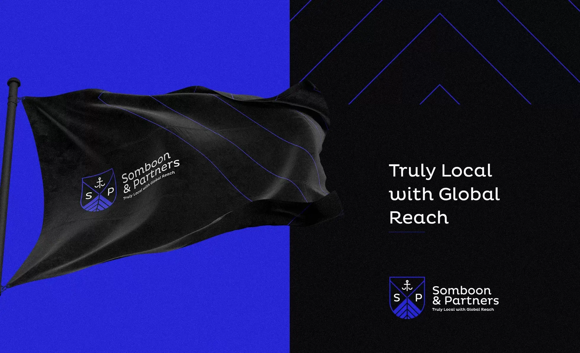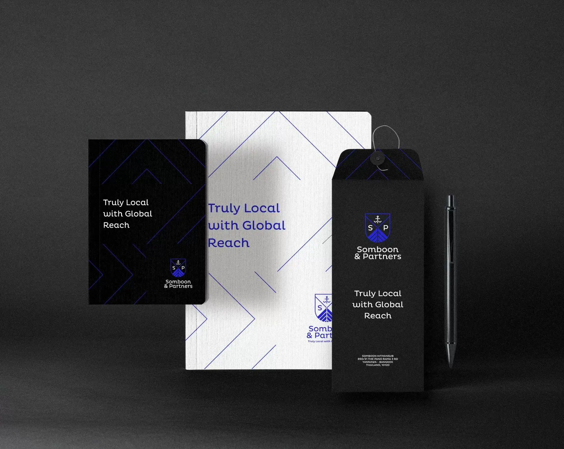 Together with elegant typography, these elements create a distinctive, modern identity for Somboon & Partners.