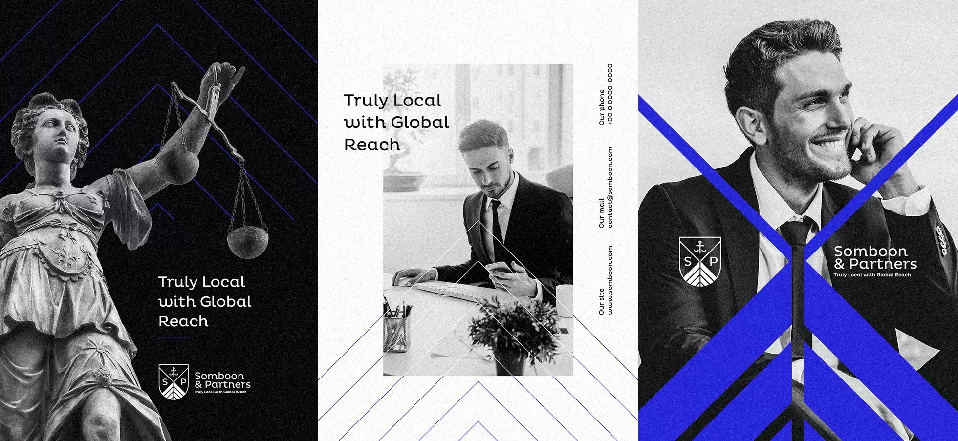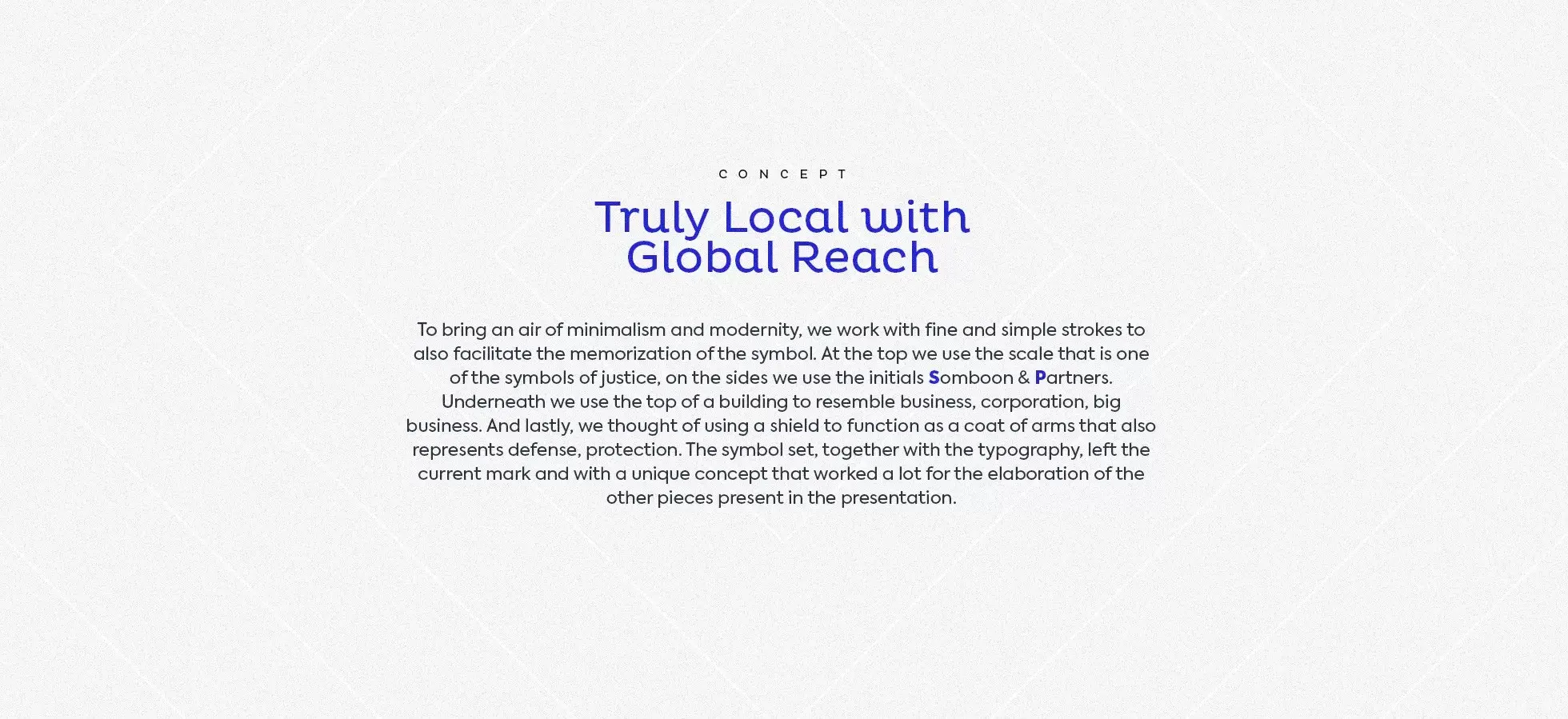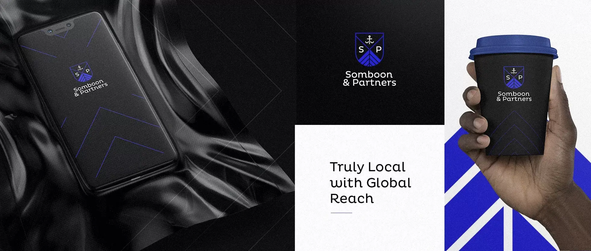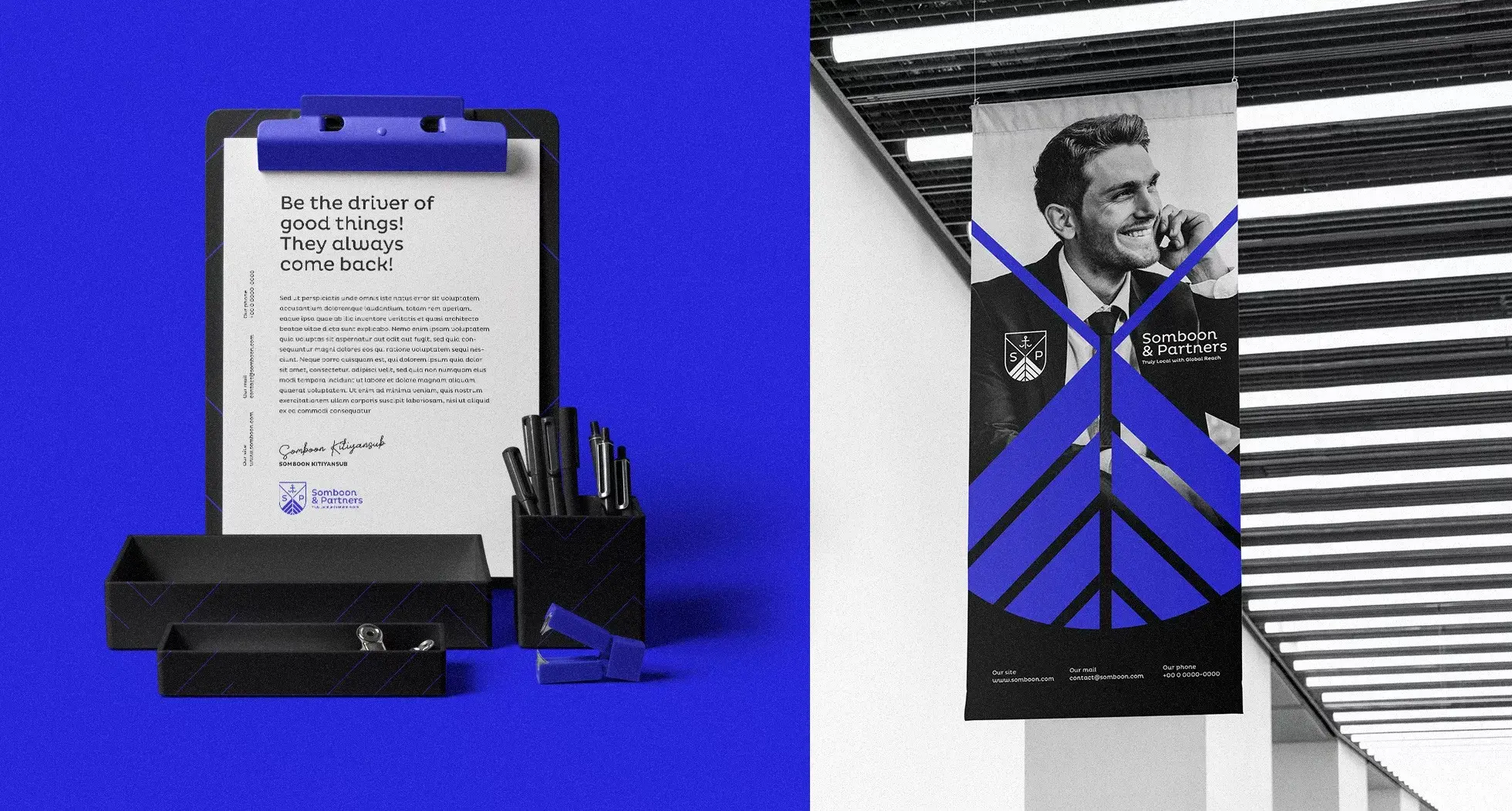 Together with elegant typography, these elements create a distinctive, modern identity for Somboon & Partners.